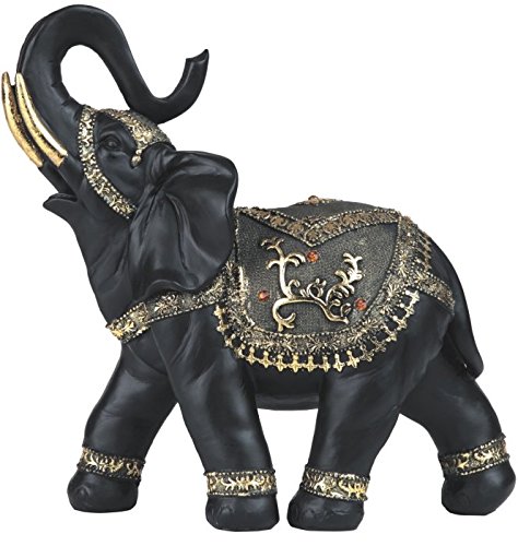 StealStreet Thai Black Elephant with Trunk Up and Orange Gems Figurine, 14.5"