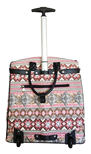 -. Binding : Electronics -. Brand : Trendy Flyer -. Color : Brown Red Pink Black Gray -. Department : laptop-computer-briefcases -. EAN : 0746839981805 -. Feature : Color: Brown, Red, Pink, Black, and Gray / Padded laptop area can fit laptop 12" wide, 12" tall and 2" thick using securing velcro strap. Padded laptop area can fit laptop 12" wide, 17" tall and 2" thick without using securing velcro strap. / Material: Polyester Canvas with Polyurethane Trim / Pattern: Tribal / Size: 19" H x 17" L x 9" W / Weight: 4.5 lbs / Additional Info: Height From Top of Handle to Floor with Handle Fully Extended: 35" -. PackageQuantity : 1 -. ProductGroup : PC Accessory -. ProductTypeName : CARRYING_CASE_OR_BAG -. Title : Trendy Flyer Computer/Laptop Rolling Bag 2 Wheel Case Tribal Brown -. UPC : 746839981805