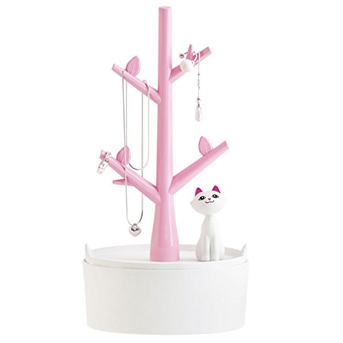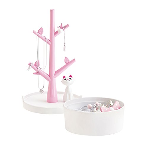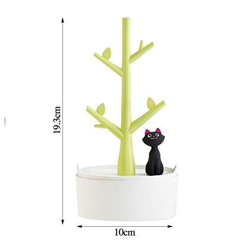 -. Title : JOLY Creative Tree Jewelry Rack Display Earring Ring Stand Organizer Box with Small Kitty