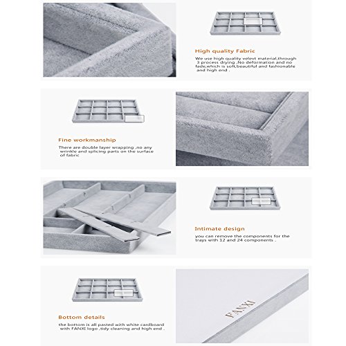 -. Feature : ORGANIZE IT ALL: With different sizes, these jewelry storage trays offer you a place for you a jewelry organizer to store your rings, earrings, Necklace ,and Pendant Conveniently. / STORE EASILY: These stackable jewelry trays hold all your jewelry and conveniently stack or separate so that you can store them on your dresser or in your drawers much more easily than a conventional jewelry box / PREVENT DAMAGE AND LOSS: Keep your necklaces from getting knotted and kinked; prevent your earrings from getting lost and leaving only one; let the jewelry organizer tray's padded compartments help prevent tarnishing and scratching. / GREAT VALUE: jewelry tray measures 13.8" x 1.29" x 9.4"providing you enough space to organize all your jewelry, rings, pendants and charms while still being able to easily see it all. / We have a perfect after-sale protection mechanism, please rest assured to buy