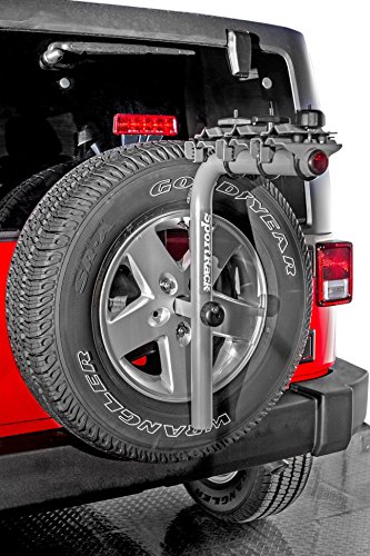 SportRack SR2813 Spare Tire Bike Rack attaches to spare tire or trailer for easy bike transport and Includes locks to secure the bike to the rack and rack to the vehicle.
