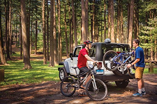Attaches to spare tire or trailer for easy bike transport