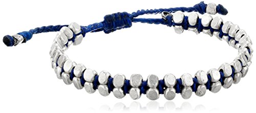 -. Title : M.Cohen Handmade Designs Double Row Sterling Silver Beads On Blue Waxed Linen Bracelet