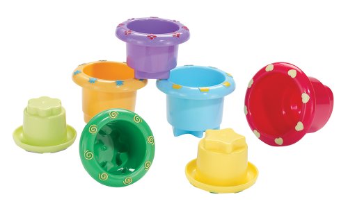Each cup features a different embossed shape along the edges, as well as a different shape pressed into the bottom of the cup. They come in assorted colors and sizes as well so that your baby can stack and nest them into one another. Stacking and nesting toys are perfect for helping your baby develop their fine motor coordination and their problem-solving skills. They learn about sizes and what cup fits over the other, stimulating their mind even at an early age. Each cup is constructed of high quality and safe materials for your baby. You don’t have to worry about any sharp edges or chemicals in the plastics. They’re also super easy to clean to keep them sanitary for your little one. Earlyears, an Epoch Everlasting Play brand, is designed for developing young minds. They boast safe, award winning, high quality baby toys that stimulate and develop sensory, motor, cognitive, and social skills. They make toys for any baby from newborns to 12 months and older. Package contains (1) Earlyears Stack ‘N Nest Cups Set. Includes 7 cups with different shapes on the bottom of each. Colorful raised shapes around the rim of each cup. Stack to over 12 inches tall. For ages 6 months and up.Feature