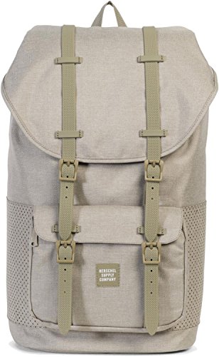 Herschel Little America Backpack in Dark Khaki Crosshatch an iconic Herschel Supply silhouette. Featuring signature striped fabric liner, air mesh back padding, and contoured shoulder straps.