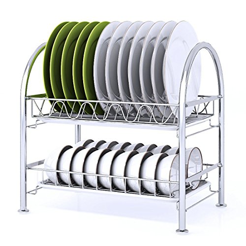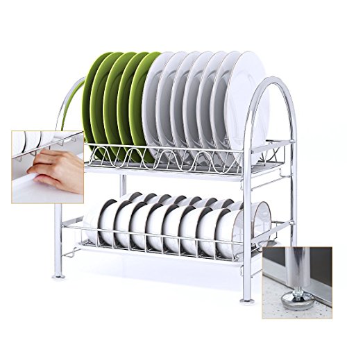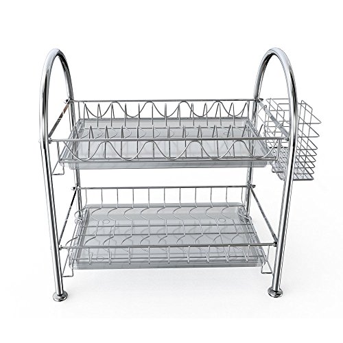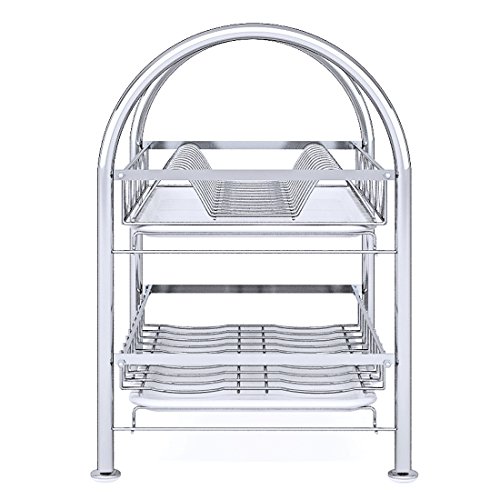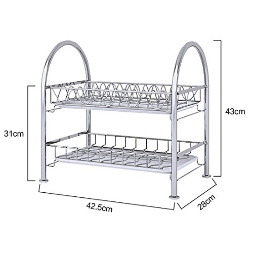 YOMYM 18-8 Stainless Steel 2 Tier Dish Rack for Kitchen Storage Drying Rack with 2 Drainboard