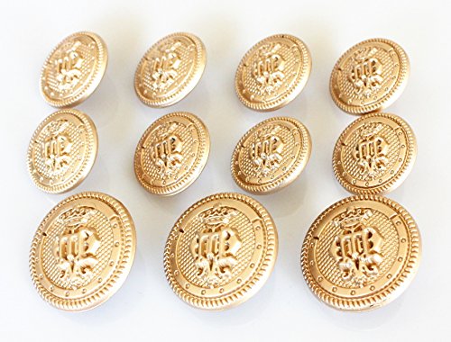 YCEE 11 Pieces Gold Metal Blazer & Suits Button Set - Shallow Relief Surface King's Crown - For Blazer, Suits, Sport Coat, Uniform, Jacket