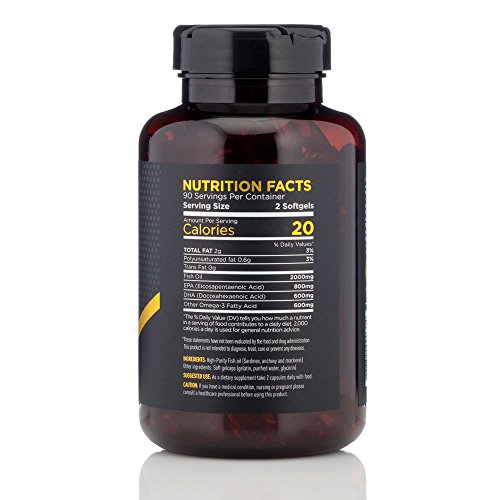 2,000 mg Fish Oil with 1,400 mg Omega-3 Fatty Acids (600 mg DHA, 800 mg EPA) per serving