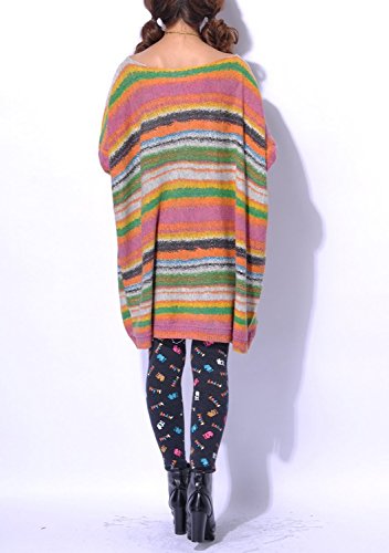 -. Title : MJK Studio Woman's Colourful Rainbow Striped Oversized Sleeve Knit Pullover Jumper