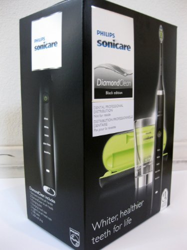 INCLUDES: Philips Sonicare DiamondClean Rechargeable Toothbrush-Black Limited Edition with 2 brush heads, Charging Glass, Black USB Charging Travel Case, USB cable and USB wall charger