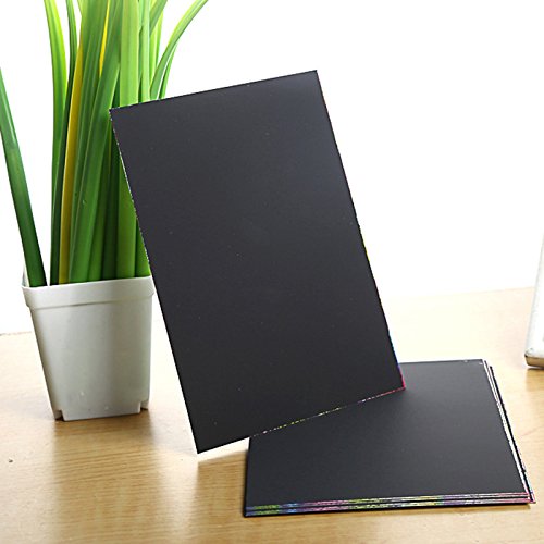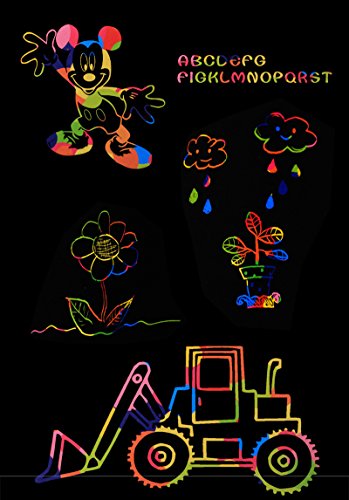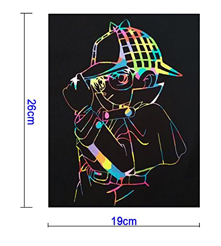 ✔ Use the scratcher to scratch away the black matte surface of the paper, revealing the brilliant rainbow colors beneath!Easy- scratch paper makes it easy for kids to create colorful, no-fail designs.