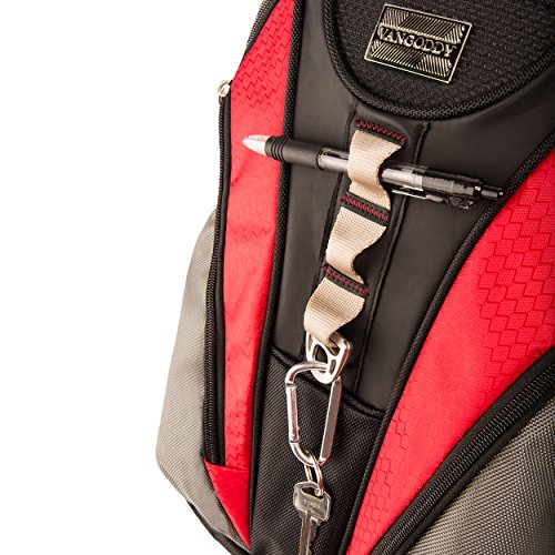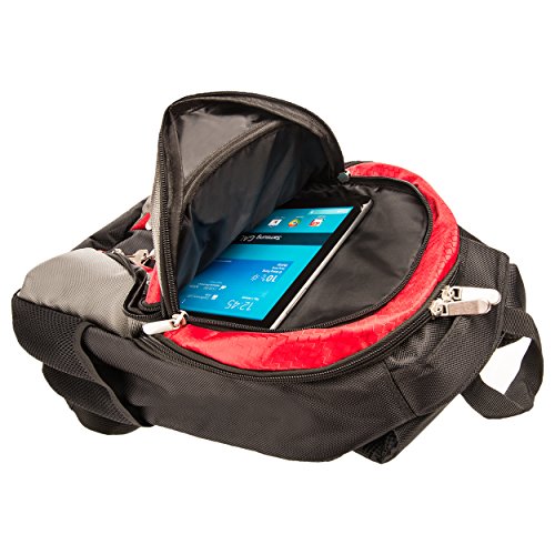 -. Feature : Mesh water bottle pockets keeps your water close at hand / Dedicated padded laptop sleeve, carry loops, media pockets, and multiple zippered storage compartments / Features durable hand strap and dedicated accessory pockets for phones, pens, and tablets or eReaders. / Fits up to a 15.6 in. laptop / Lockable designed zipper pull / Interior pockets help to keep things organized / Padded adjustable shoulder strap / Exterior Dimensions: 18 in H x 13.25 in W x 6 in D