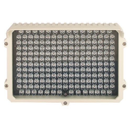 -. Feature : 198pcs ?8-14? IR LED , Supports 12V DC input voltage / Ideal for outdoor as well as Indoor applications, IP66 case, 360 degree tilt / Infrared range up to 300-400 feet (100-130 meters), light beam angle 45-60 degree,wave length 850nm / Low operating costs, auto-switch to ON when available light is under 10Lux by CDS / 3A 12VDC Power Adaptor included