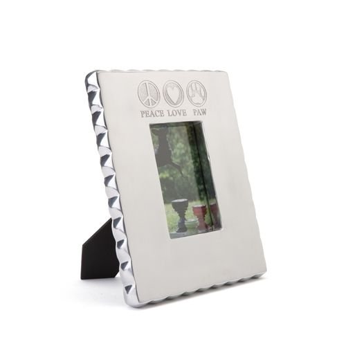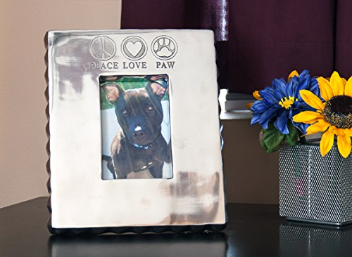 Pet Junkie "Peace, Love, Paw" Pet Picture Frame for Dog and Cat Photos - Silver, 4 x 6 Photo