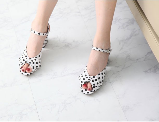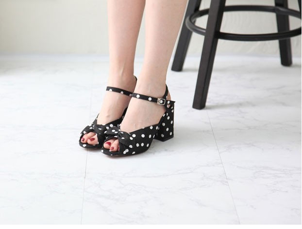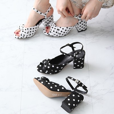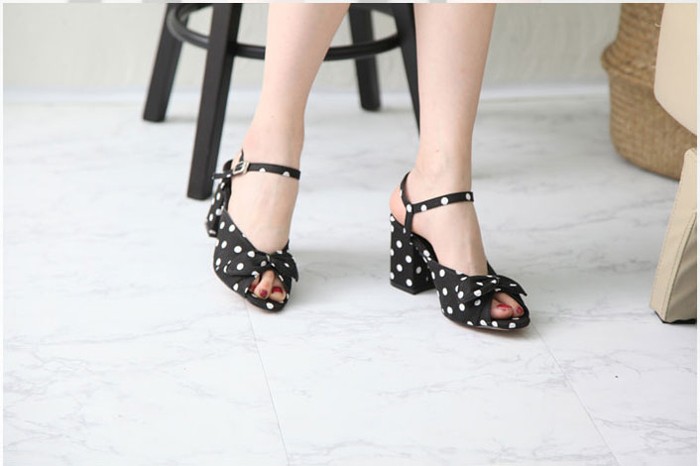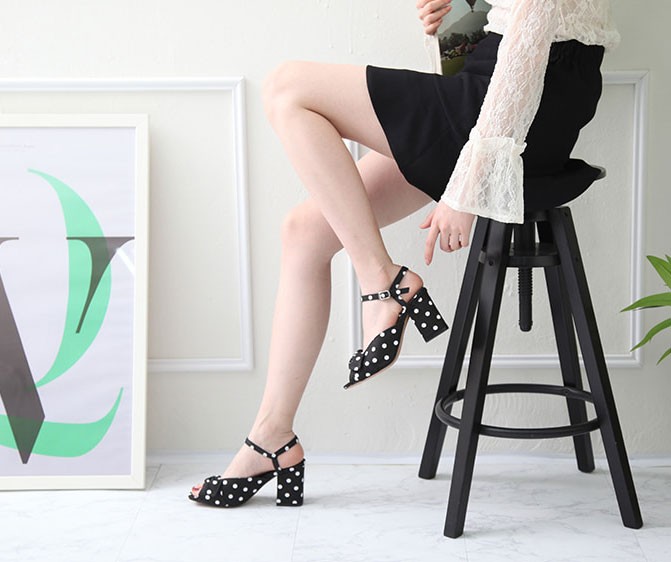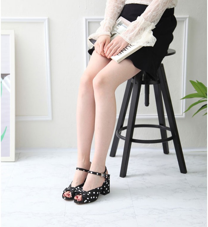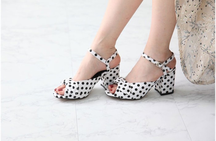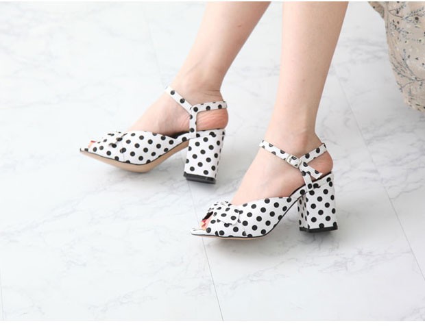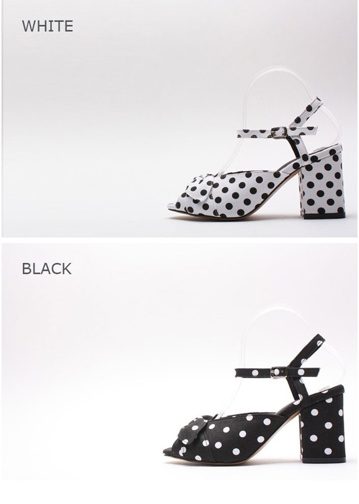 商品名:サンダル レディース ドット アンクルストラップ 太ヒール チャンキーヒール 2018 春 ファッション 靴 婦人靴