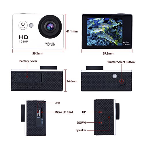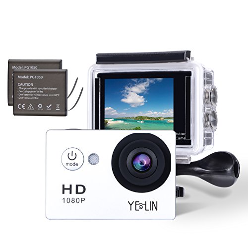 YELIN 1080P Full HD 2.0 inch LCD Screen Waterproof Sports Action Camera Cam DV 5MP DVR Helmet Camera Sports DV Camcorder+Extra 1 Batteries
