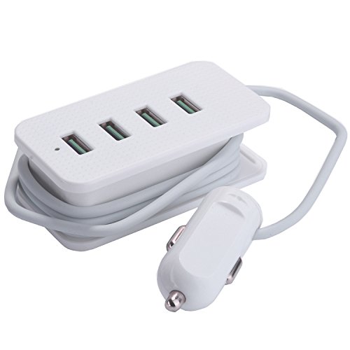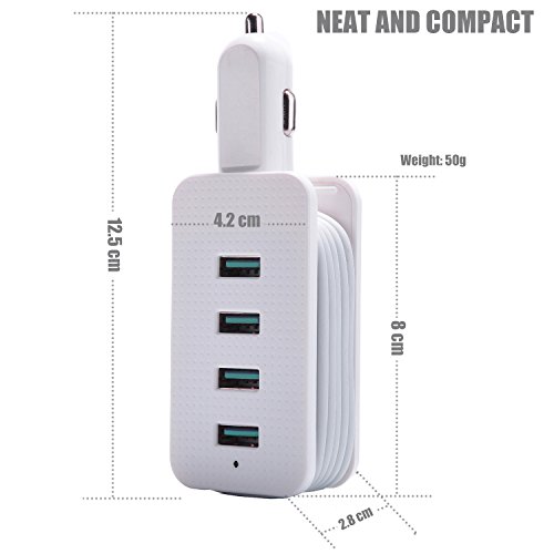 Car USB Charger, 4 Ports USB Strip 4.2A Travel Car Charger Station Smart Identification Technology 1M/3ft Cord For iPone 7 6s Plus iPhone 5s iPad Pro Samsung Galaxy S6 S7 on Road Trip (White)