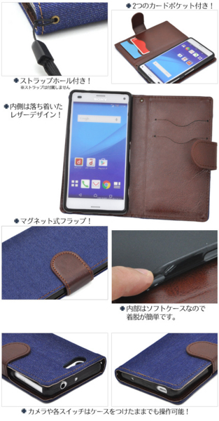 デニムデザインのXperia A4 SO-04G用スタンドケースポーチ。