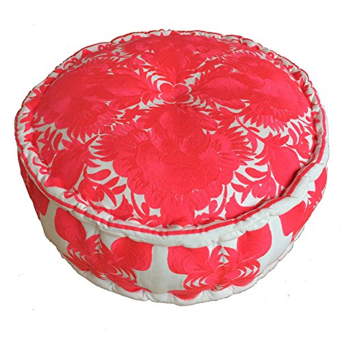 -. Feature : Stilvolle hochwertig eingesticktes pouff / Leinen-Material / Ø 60 cm, Höhe: 20 cm / Tolles extra / Wunderschön bestickt
