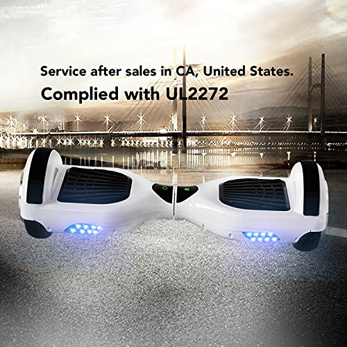 Noiseless Surging Power: Top-of-the-line 220W brushless DC silent motor gives the hoverboard power to maintain a 7-9 miles range with cruise speed of 8 mph, easily climb slopes and maneuver close spaces. LED light system allow you to ride on dim road.