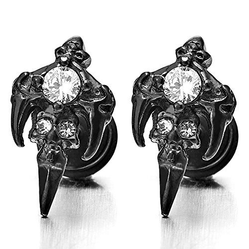 -. Title : Mens Black Sword Cross Stud Earrings with Cubic Zirconia, Stainless Steel, Screw Back, 2 pcs