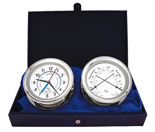 Windlass Gift Set Time & Tide Clock & Comfort Meter by Master-Mariner, Chrome finish, White dial