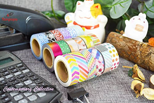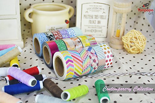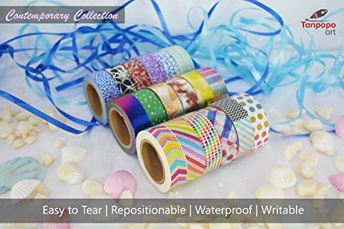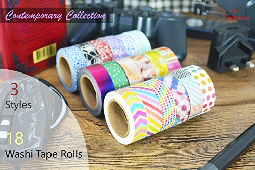 Washi Tape set 18 rolls by Tanpopo Art -Contemporary Collection | Rainbow Colors with Modern Unique Design Tapes