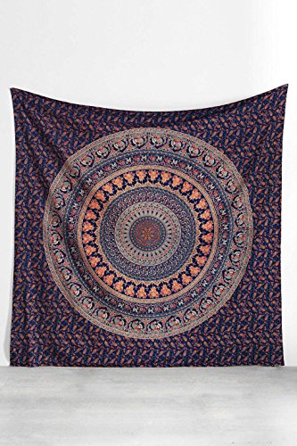 A Vibrant Blue Color Theme Bohemian Mandala Cotton Tapestry, This is a Multipurpose Full Size / Double Blanket. Hippie Indian Tapestries, Stone Washed & Screen Printed Bohemian Tapestries, Indian Tapestry Bedding, tightly loomed fabric wall décor. These Exclusive tapestry is screen printed with beautiful pattern, the fabric is stone washed which gives a wonderful color effect and feel to the fabric. This is a beautiful piece of art at the most reasonable prices and can be used as: Wall Hanging Bedspread Bed Cover Table Cloth Curtain Room Décor Tapestry Picnic Blanket Beach Throw This beautiful tapestry is sure to change the ambience of the room and change even a plain wall into exotic art effect. It is a beautiful piece of art and you can use different pattern and colors of these tapestries to give different effect to your room / wall as per the season. The Printing on this fabric is an example of fine workmanship of Indian artisans, the fabric used is 100% cotton and printing is screen printing. These tapestries are thin sheet of fabric which is very tightly loomed making it a durable fabric. The edges are hemmed. Beautiful color effects are outcome of stone washing process that the fabric has to go through before the printing is done.