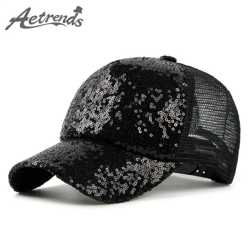 Name:2018 New Women's Summer Mesh Baseball Caps with Sequins Decoration