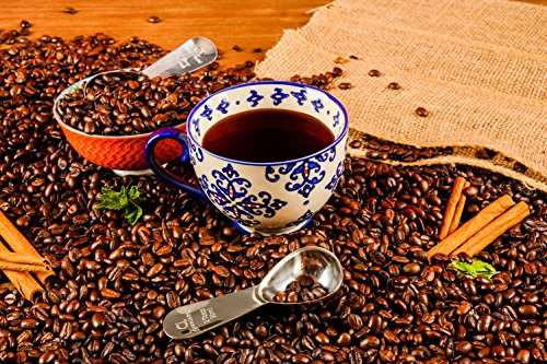 Features Benefits ? Precise measurements: 2 tablespoon (tbsp) per scoop ? Solid 304 Grade (18/8) Stainless Steel Construction ? Mutltiuse: Scoop coffee, tea, sugar, flour, liquids, supplements and more with ease ? Ergonomic Design: One of a kind design with an extended handle and grip-friendly thumb loop ? Effortless Cleaning: Dishwasher safe, or easily washable by hand.