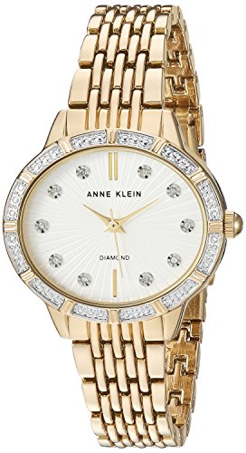 -. Title : Anne Klein Women's AK/2782SVGB Diamond-Accented Gold-Tone Bracelet Watch
