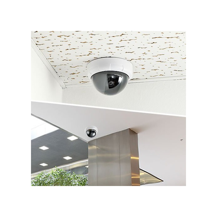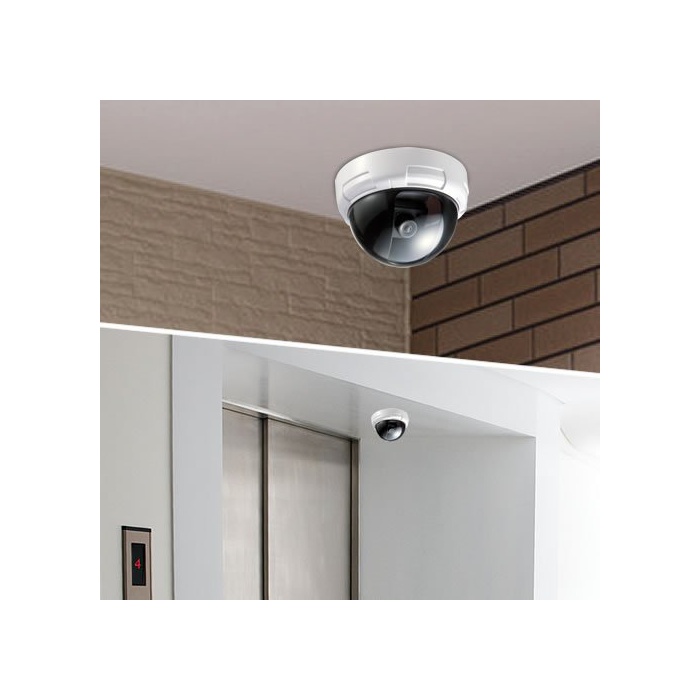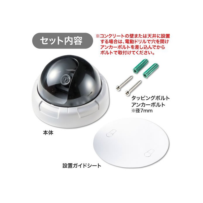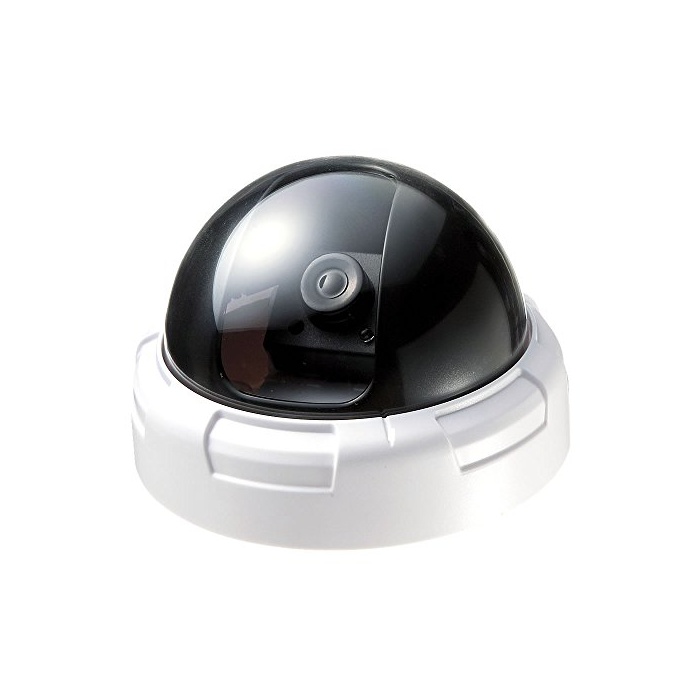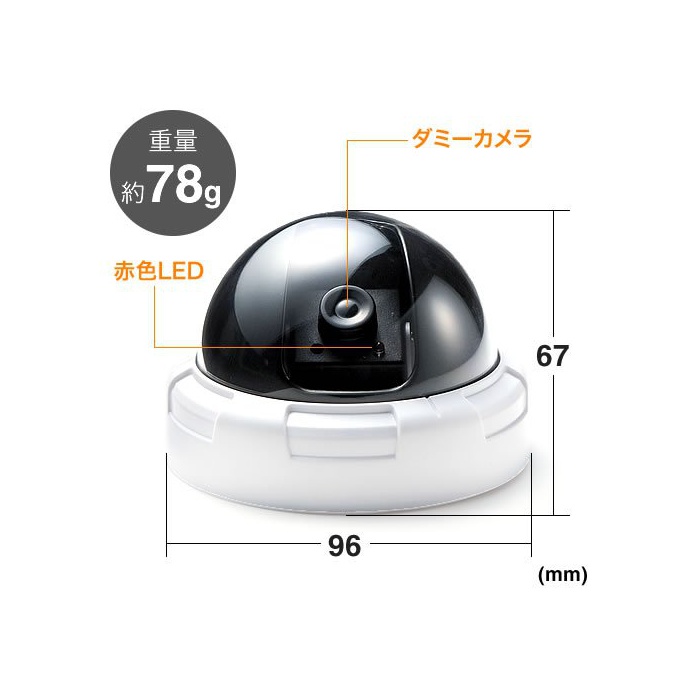 진짜 를 빼닮은 더미 카메라.돔형.적색LED점멸에 방범 효과 업.빈집털이,만비키(손님을 가장해 물건을 슬쩍하는 것),차 위 털이 등을 감시하고, 시큐러티 대책에.