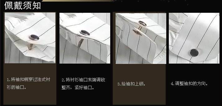 材质:铜制 包装:本店袖扣统一包装为白色塑料小袋,如需另外包装请咨询客服 Q1:袖扣可以搭配所有衬衫吗?还是只能是特定的款式? A:不是的。双叠袖衬衫是袖扣的搭档。法式衬衫是最佳选择。法式衬衫佩戴袖扣是十分商务的穿法。 Q2:袖扣与领带夹应可以同时佩戴吗?该如何搭配? A:袖扣与领带夹的色彩拼接袖扣对于男人是一种高品位的象征,起着画龙点睛的妙用。 Q3:我的身材比较高大,能佩戴袖扣吗? A:体格魁梧的男士应尽量避免造型小巧精细的袖扣,轮廓稍大的形状会显得更大气。 身形瘦小的男士,选择袖扣时以精细造型为佳。