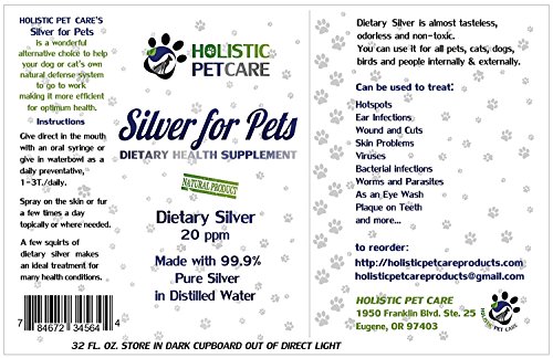 Silver for Pets-32 Oz-20 PPM Dietary Health Supplement - For Dogs, Cats, Birds, Fish, Horses and All Pets