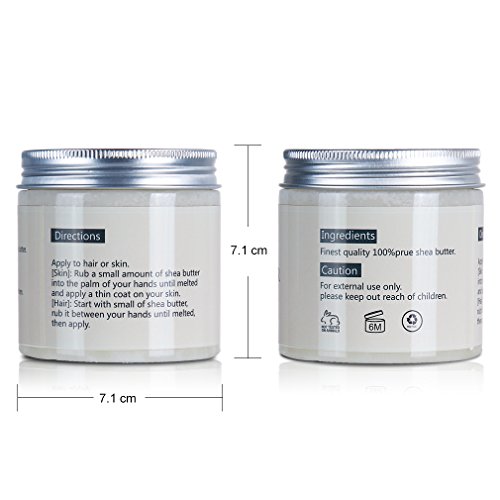 -. Feature : Pure Raw Shea Butter, Organic Ivory Shea Butter for Natural Skin Care, Hair Care 8 oz/250g.This top grade, unrefined, zero additive butter could ues for hair, face, body and countless beauty recipes. / Organic shea butter is considered as one of the best anti-aging and moisturizing agents for skin. Natural vitamins, antioxidants and fatty acids in shea butter make it amazingly nourishing and moisturizing. / This Shea Butter, when applied regularly will boost your skin's natural collagen production as well as soothe it for a more youthful and flawless glow. / Easy Application of this soothing butter, just rub a small amount of Shea Butter into your palms until it melts then apply a thin coat on your skin or to any dry areas. / Safety Warning: For external use only. Rub a very small amount on the inside of your elbow area to test for any allergic reaction before use. Avoid contact with eyes, keep out of the reach of children. If pregnant, consult with your health care provider before use.