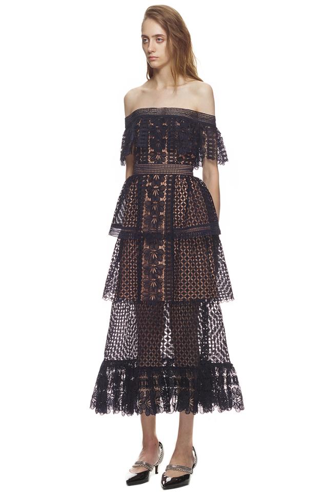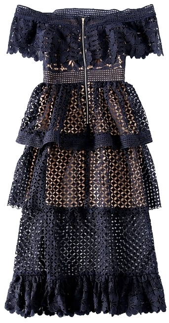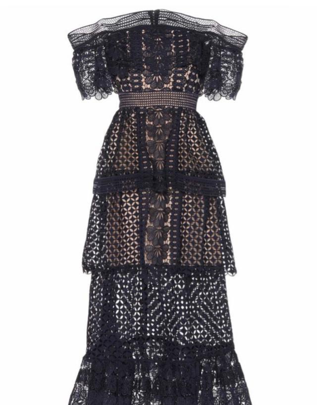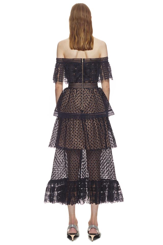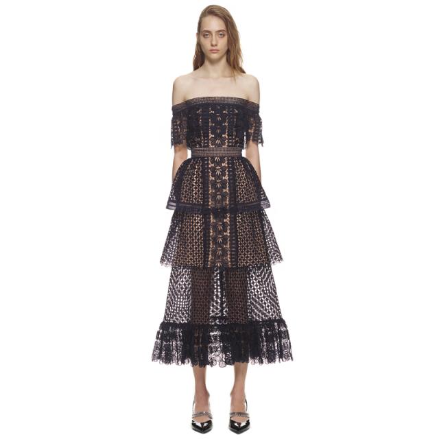 オフショルダー レース マキシ ロング ティアード ドレス ワンピース