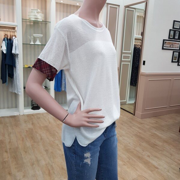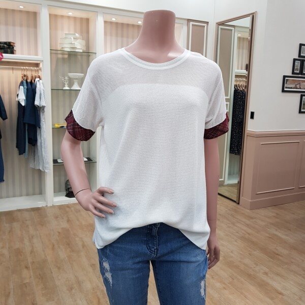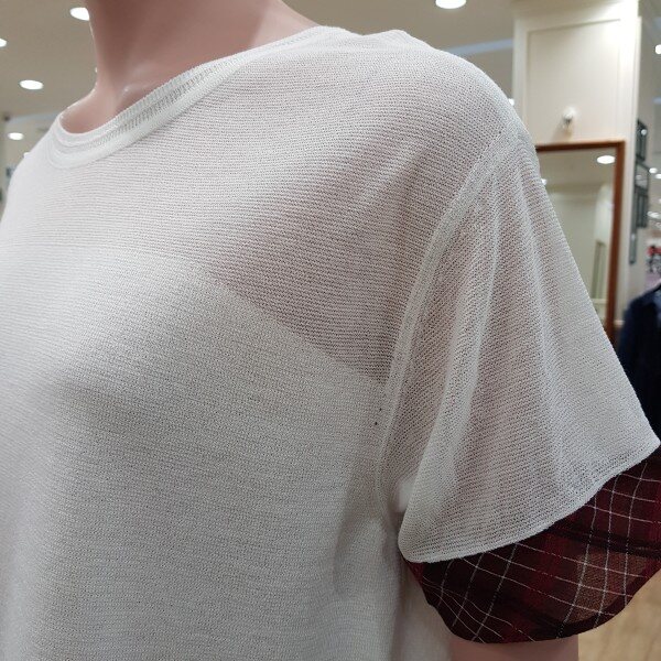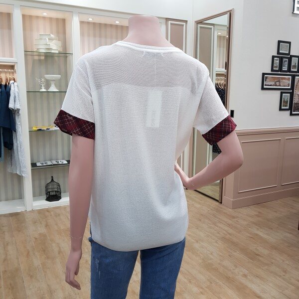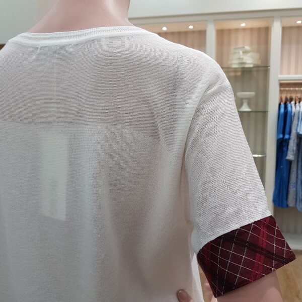 라운드반파니트~체크배색포인트55기준 총장63cm