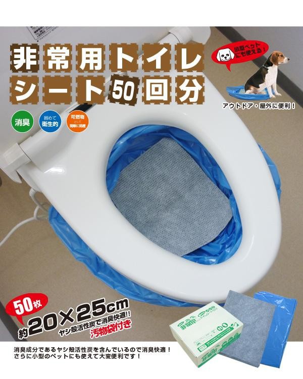 水を使えない状況でもシートを使用するだけで用を足せます。溶けるシートを採用!!使用後は固まるので簡単にゴミとして廃棄可能です。小便シート1枚で1~2回、大便はシート上下で各1枚(大便をシートではさみこむように)ご使用すると有効です。小型のペットにも使えて便利です♪