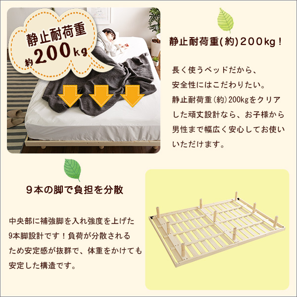●3段階に高さを調節できる脚付きすのこベッド