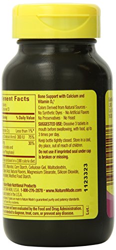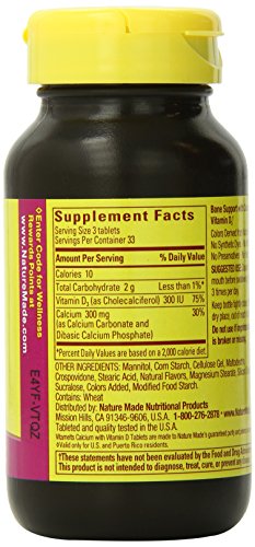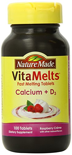 -. Binding : Health and Beauty -. Brand : Nature Made -. EAN : 0031604041076 -. Feature : Bone support with vitamin D / Melts in your mouth, no need for water / Irresistibly melty, great taste -. IsAdultProduct : 0 -. Label : Nature Made -. Manufacturer : Nature Made -. MPN : 4107 -. NumberOfItems : 1 -. PackageQuantity : 1 -. PartNumber : 4107 -. ProductGroup : Health and Beauty -. ProductTypeName : HEALTH_PERSONAL_CARE -. PublicationDate : 2014-06-01 -. Publisher : Nature Made -. ReleaseDate : 2014-05-29 -. Size : 100 -. Studio : Nature Made -. Title : Nature Made Vitamelts Calcium Tablets, Raspberry Crème, 100 Count -. UPC : 031604041076