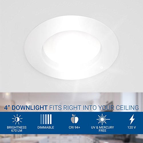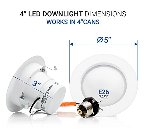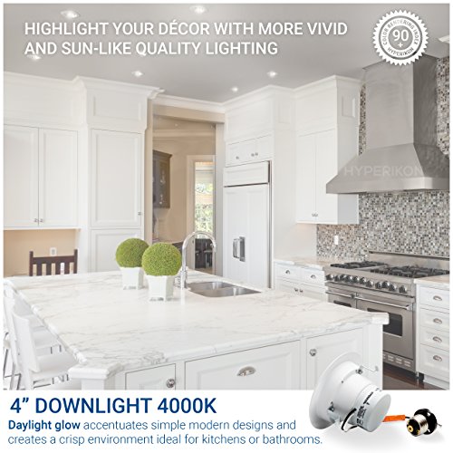 Hyperikon's 4" LED Downlight is a perfect flush mount solution for recessed lighting cans using incandescent or fluorescent bulbs. These LED recess lights fit 4-inch ceiling cans perfectly and cut energy usage by up to 87% by replacing 65W with 9W. These light fixtures are dimmable from 100%-20% when used alongside modern LED dimmers. Great for use in bedrooms, living rooms, and kitchens, these bulbs have a lifetime of 45,000 hours, or 21 years with average use.