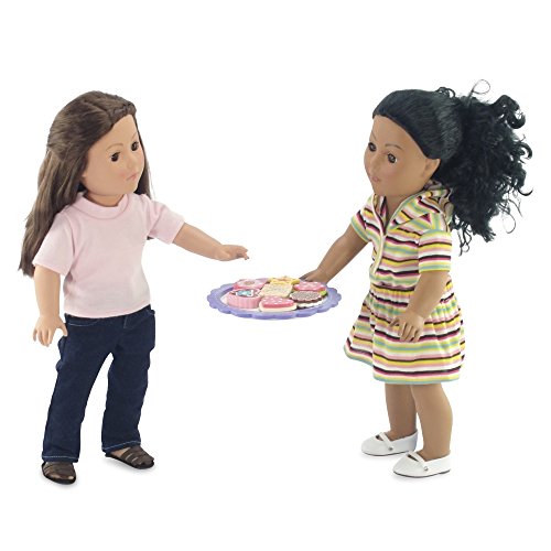 - Beautiful hand-painted wooden cookie tray just right for your 18-inch doll!