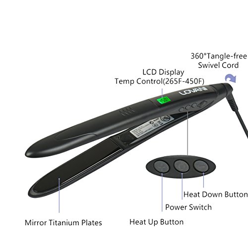 [Digital LCD Display & Precise Temperature Control]High-end digital LCD temp display of this Titanium Hair Flat Iron allows you to set precise temperatures.Adjustable Temp from 265 to 450℉ to suit all hair types.
