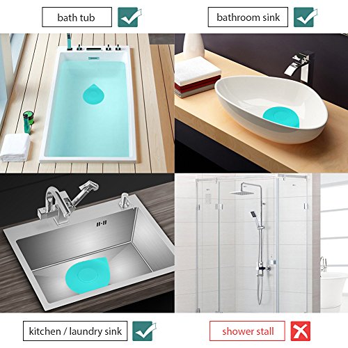 Super slim and flat stopper cover design make it seal perfectly with no leakage by covering large area. No-slip good grip, are featured of the bathtub stopper to be a drain hole's defender, small suction cup can sucks on the wall when not in use occupied no space, light weight, handy size, practical not only in home bathroom bathtub, kitchen sinks, cant be too convenient to fit for travel, hotel laundry sinks, tubs.