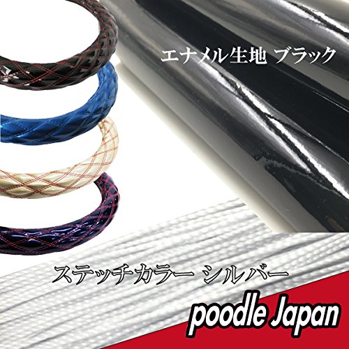 -. Title : MADE IN JAPAN 日本製 ハンドメイド 外径 (39.5-40.5cm) ハンドルカバー エナメル ダブルステッチ ブラック&シルバー TBH-EN0118-LS トラック用品 軽自動車 乗用車 TBH-EN0118-LS