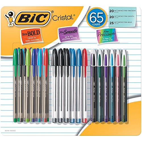 -. Title : BIC Cristal Smooth Ballpoint Stick Pen, Assorted Colors, 65 Pack