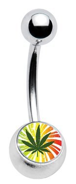 Marijuana Pot Leaf Rasta Swirl Green, Yellow & Red Classic Style Sexy Belly Navel Ring 14g, 7/16" Length