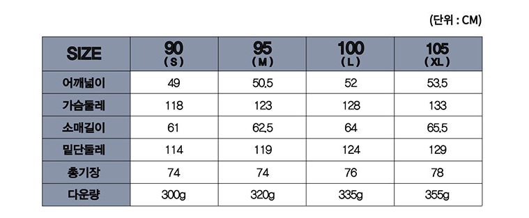 | 사이즈 | 90(S),95(M),100(L),105(XL~XXL) |