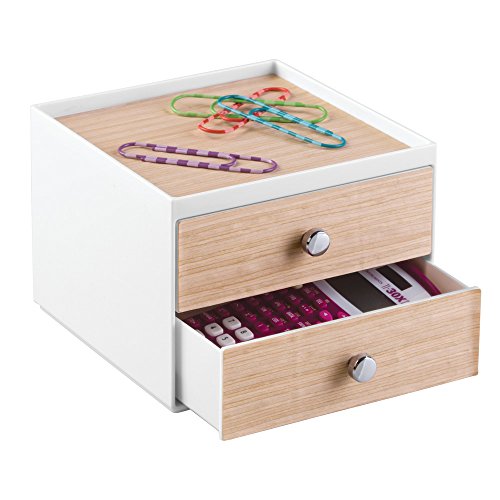 InterDesign RealWood Cosmetic Organizer for Vanity Cabinet to Hold Makeup, Beauty Products - 2 Drawers, White/Light Wood Finish