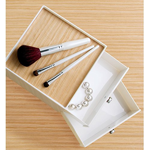 - Cosmetic drawer organizer with 2 storage drawers. Great for makeup, jewelry, hair accessories, cosmetic brushes